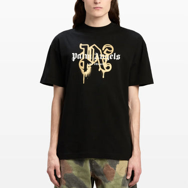 Palm Angels Las Vegas Sprayed Monogram Logo T-Shirt - Black/Gold