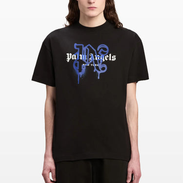 Palm Angels New York Sprayed Monogram Logo T-Shirt - Black/Blue