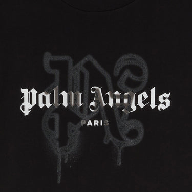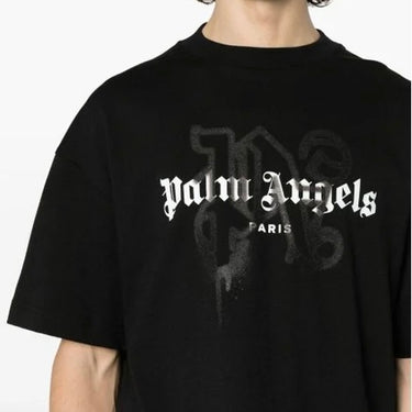 Palm Angels Paris Sprayed Monogram Logo T-Shirt - Black/Black