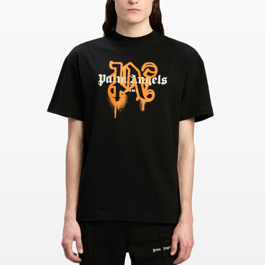 Palm Angels Roma Sprayed Monogram Logo T-Shirt - Black/Orange