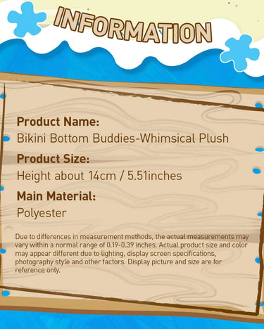 Dive into fun with the Pop Mart x Bikini Bottom Buddies Plush Blind Box! Each surprise plush features your favorite Bikini Bottom characters in adorable, collectible form. Perfect for fans and collectors alike, these soft, squeezable pals bring a splash of joy and whimsy to your day. Unbox the excitement and see which buddy you’ll catch!